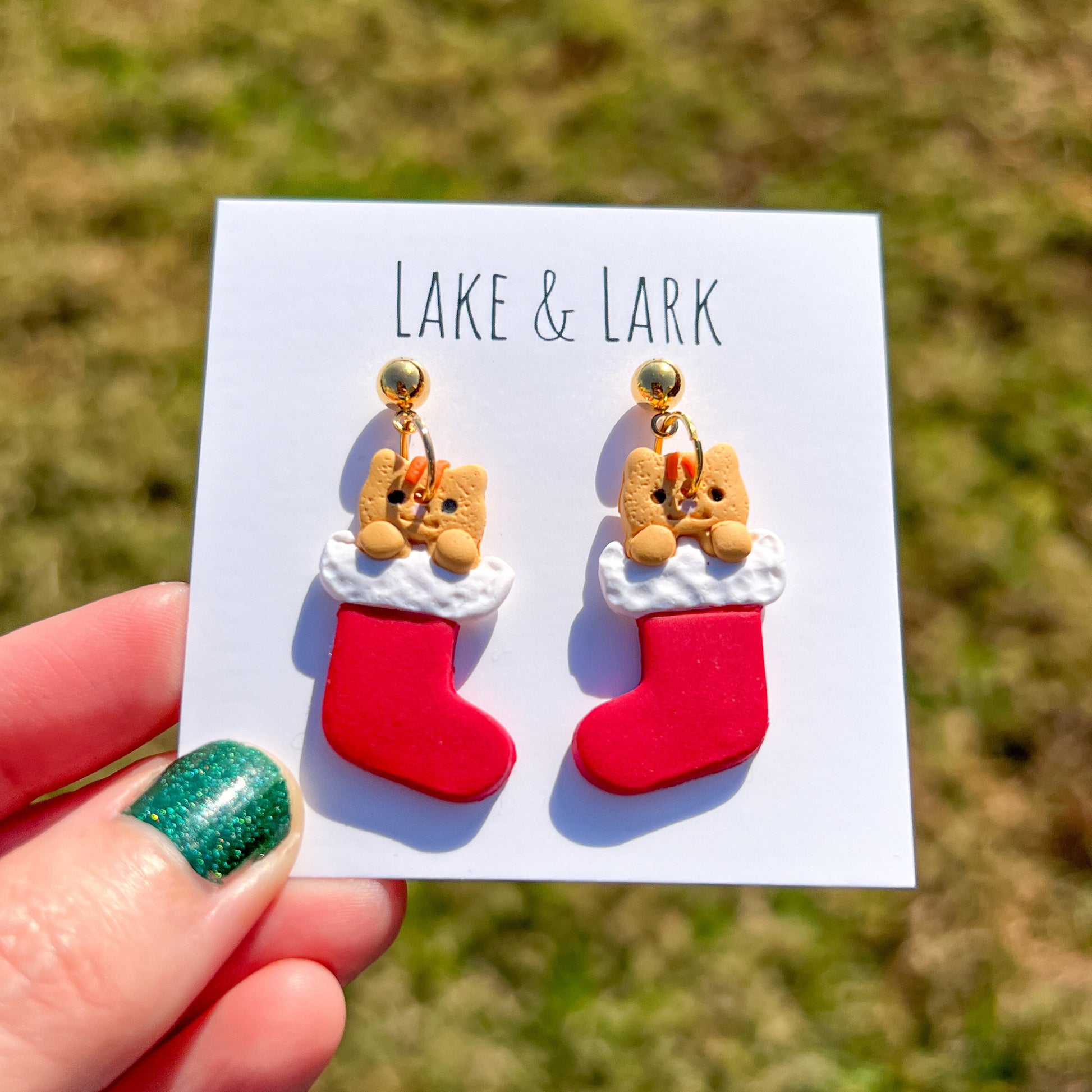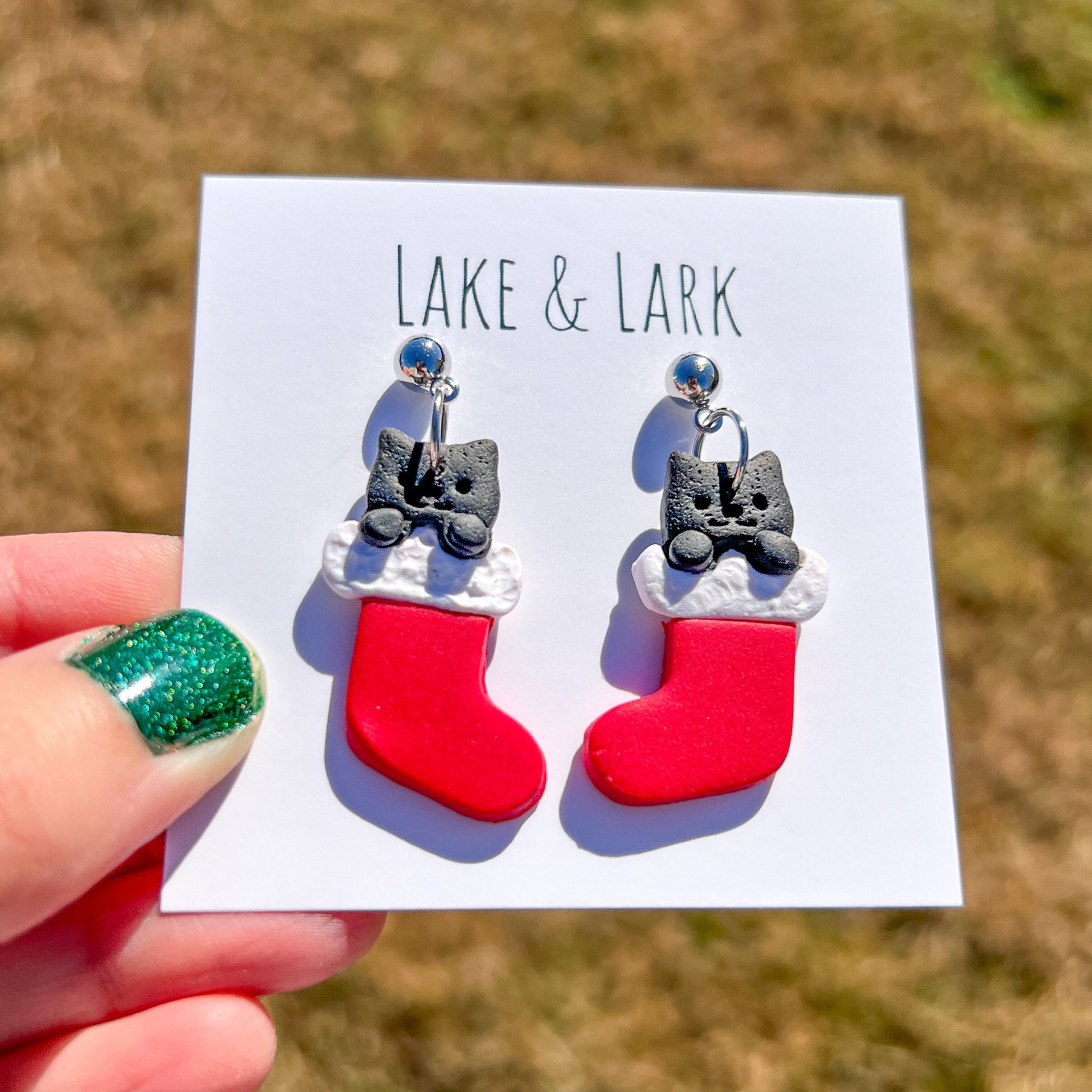 Cat Christmas Stocking Earrings | Handmade Holiday Cat Mom Jewelry